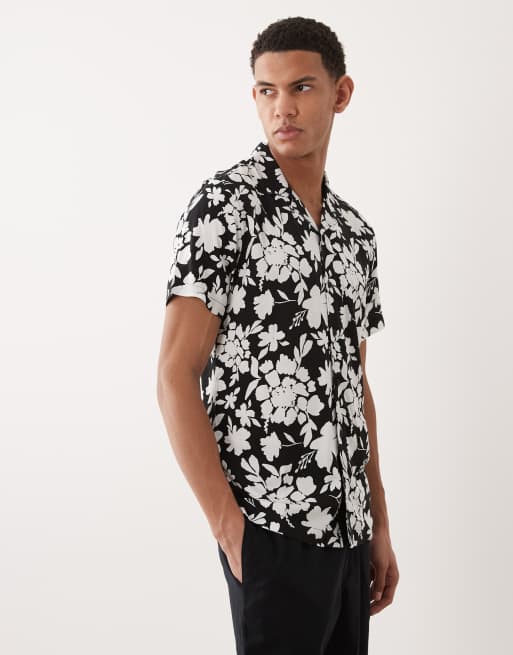 Threadbare short sleeve shirt in black and white floral print