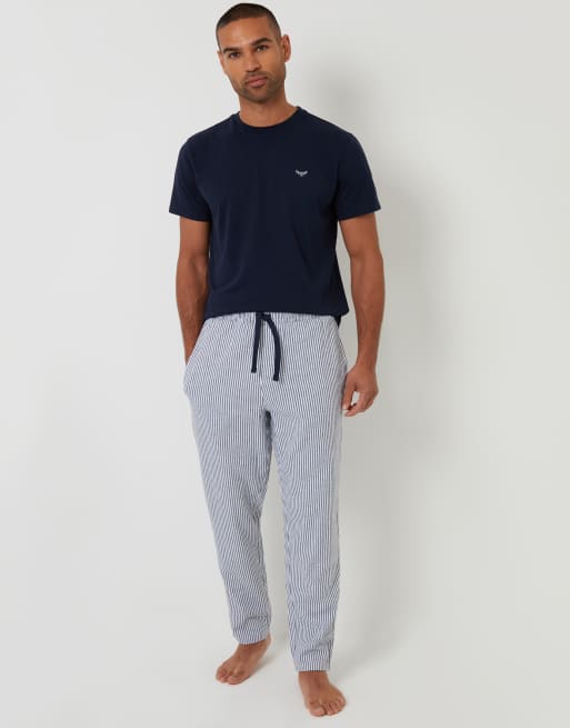 Threadbare Short sleeve top & stripe pants pyjama set in navy