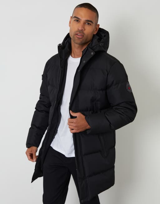 Threadbare Showerproof longline hooded puffer jacket in black