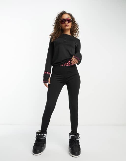 Threadbare Ski base layer banded waistband leggings and long sleeeve top set in black