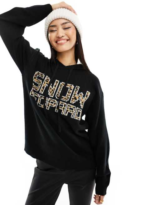 Threadbare Ski hooded jumper in leopard print