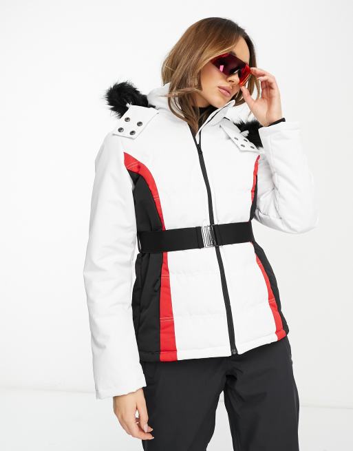 Threadbare Ski puffer jacket with faux fur trim hood in white