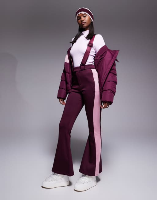 Threadbare Ski salopettes with contrast panels in burgundy and pink