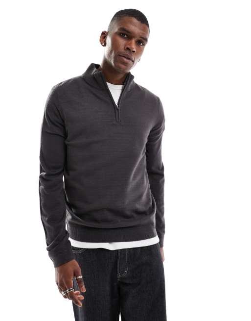 Threadbare soft touch half zip funnel neck jumper in charcoal grey