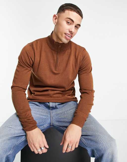 Threadbare soft touch quarter zip funnel neck jumper in auburn