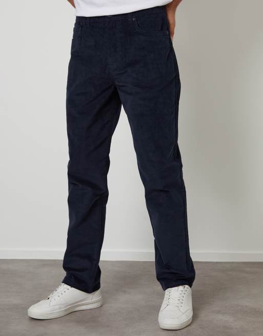 Threadbare Straight leg 5 pocket corduroy trousers with stretch in navy