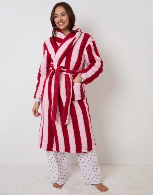 Threadbare Stripe borg dressing gown in pink