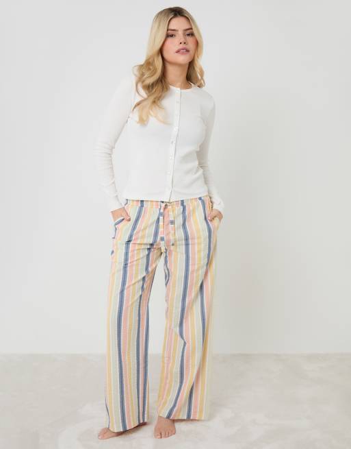 Threadbare Stripe button front cotton pyjamas (2-piece set) in multi
