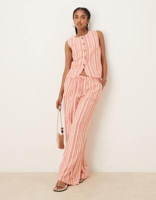 Threadbare Striped braided pocket detail linen blend wide leg trousers in orange