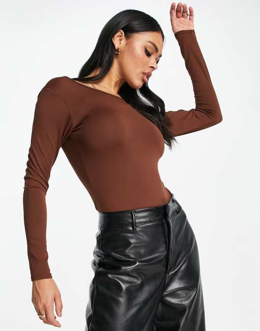 Threadbare super stretch scoop back bodysuit in chocolate brown