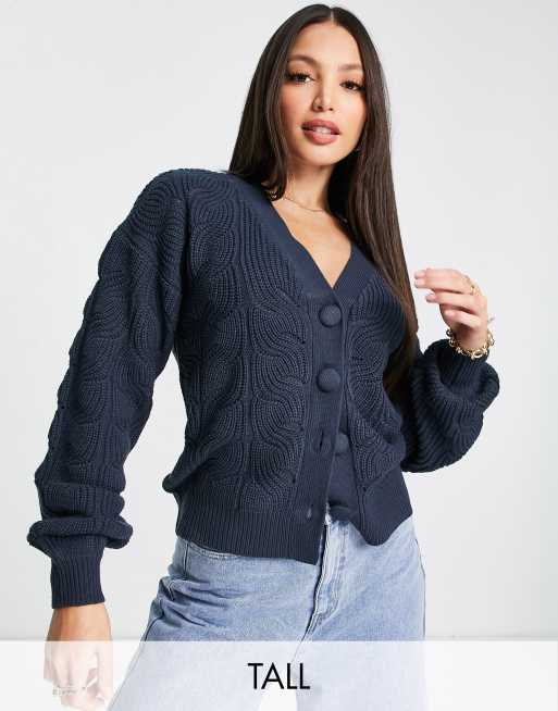 Threadbare Tall Astrid allover stitch cardgian in deep navy