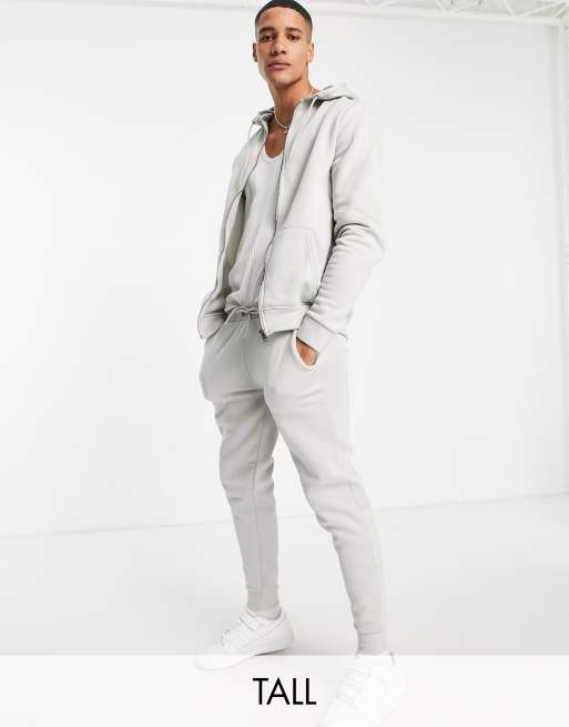 Threadbare Tall full zip hoodie & jogger tracksuit set in light grey