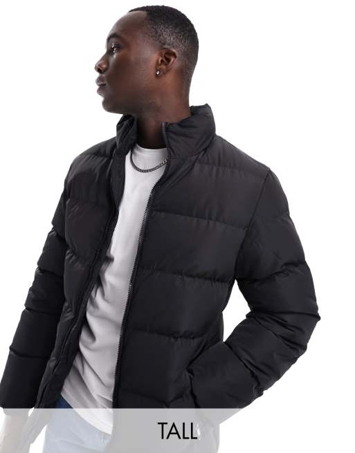 Threadbare Tall funnel neck puffer jacket in black