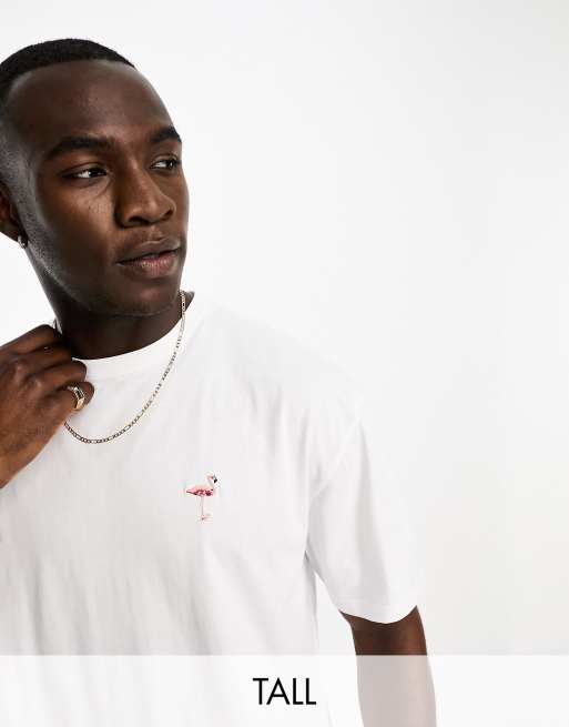 Threadbare Tall oversized flamingo embroidery t-shirt in white