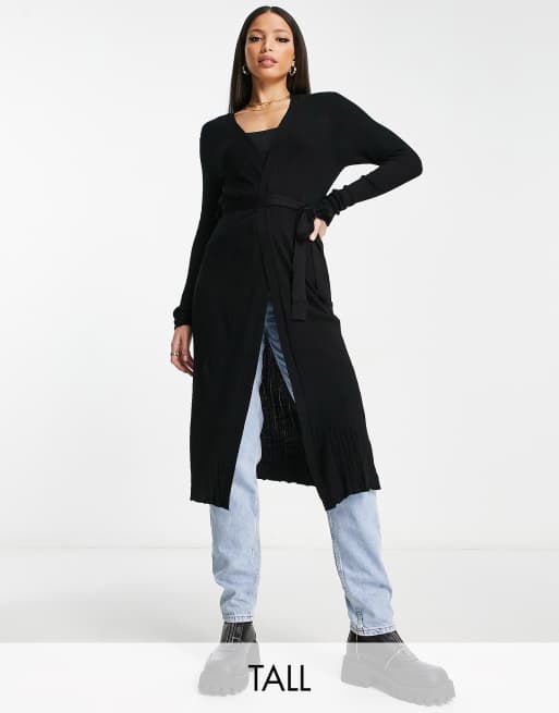 Threadbare Tall Rosemary tie waist longline cardigan in black