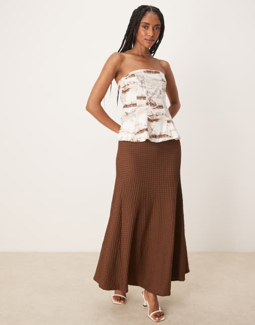 Threadbare Textured jersey pull-on maxi skirt in chocolate