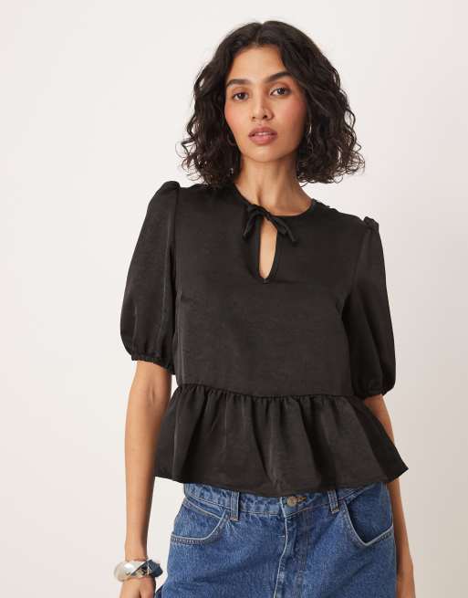 Threadbare tie front bow detail top in black