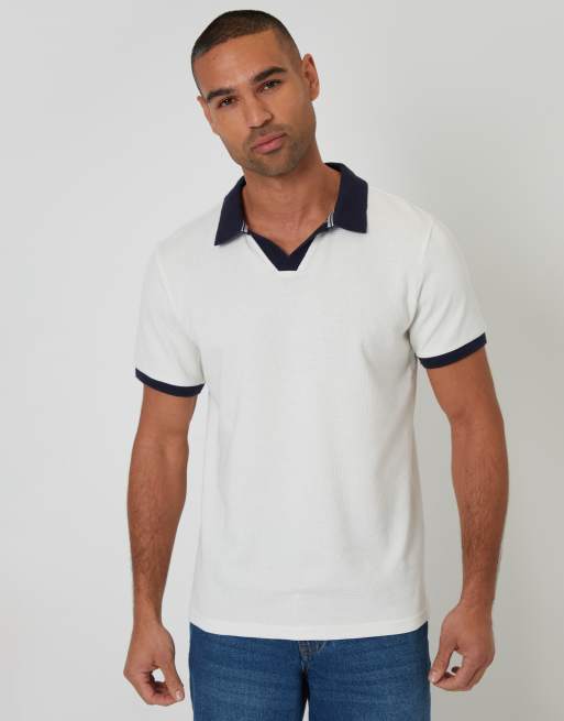 Threadbare Trophy neck waffle polo shirt in white