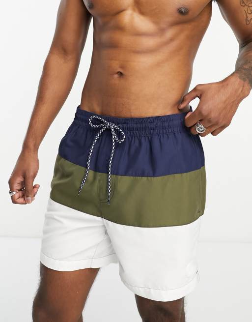 Threadbare tudor block stripe swim short in khaki white midnight