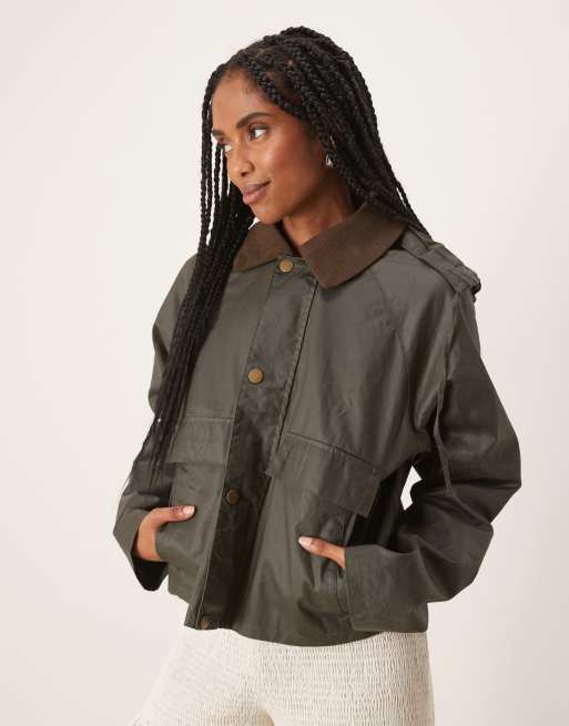 Threadbare Waxed jacket with concealed hood in khaki