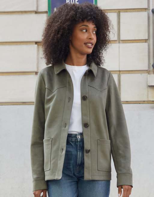 Threadbare Yoke detail suedette shacket in olive