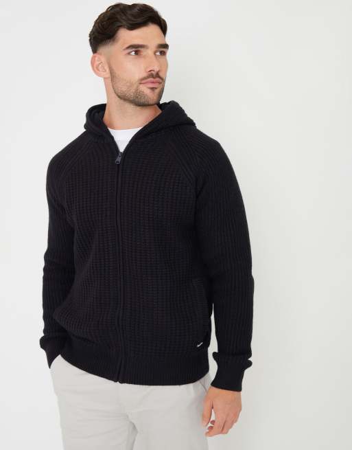 Threadbare Zip-up knitted hoodie with microfleece lining in navy