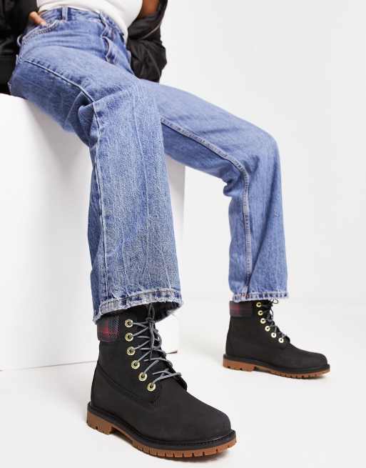 Timberland 6 inch Hert cupsole boots in black/pink