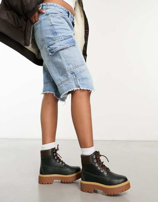 Timberland 6 inch premium elevated platform boots in dark green full grain leather