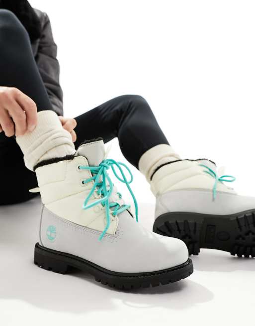 Timberland 6 inch puffer boots in light grey nubuck leather