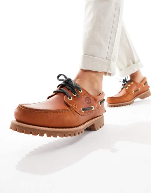 Timberland authentic 3 eye boat shoes in brown full grain leather
