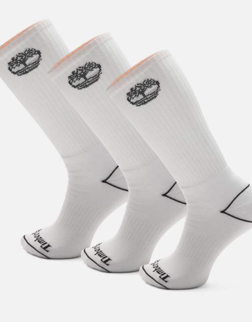 Timberland Bowden fully cushioned crew with tree logo socks in white