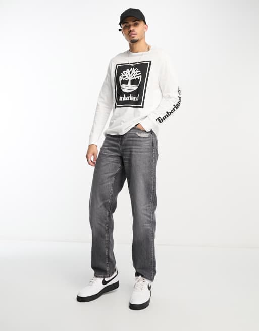 Timberland Front Stack Logo long sleeve t-shirt in white