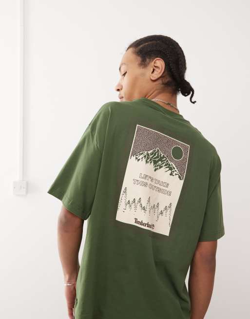Timberland oversized mountain graphic t-shirt in dark green - Exclusive to Asos