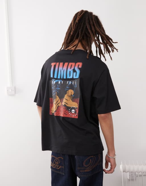 Timberland Timbs 6"" backprint oversized t-shirt in black