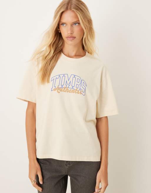 Timberland Varsity graphic short sleeve tee in beige