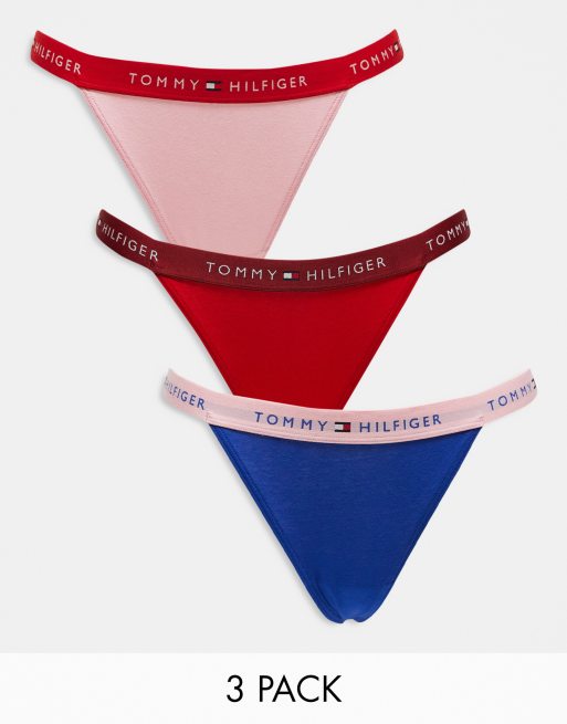 Tommy Hilfiger 3-Pack Repeat Logo String Thongs in Multi