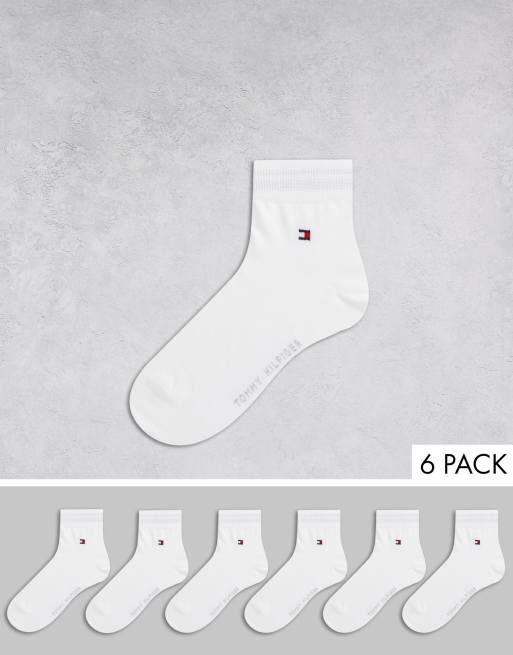 Tommy Hilfiger 6 pack quarter socks with flag logo in white