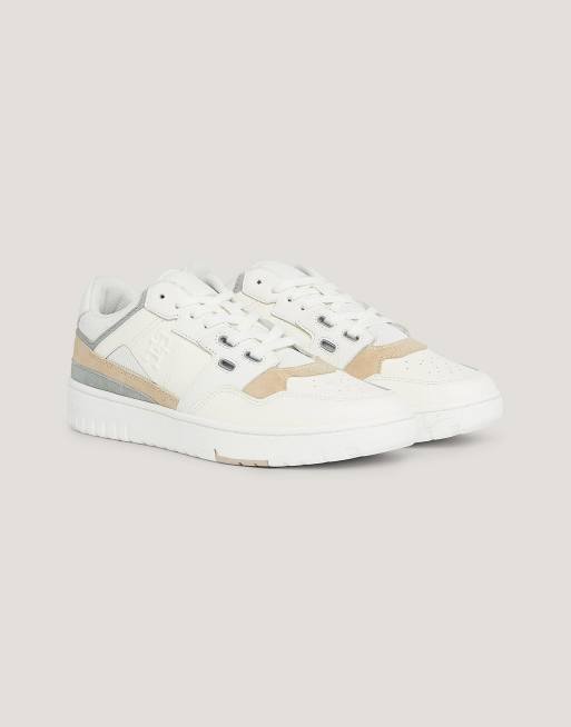 Tommy Hilfiger basket leather panel trainers with chunky sole in Weathered White