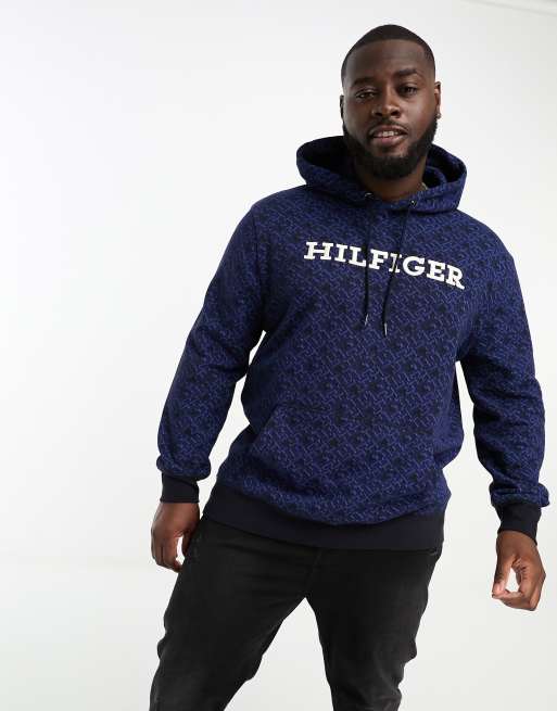 Tommy Hilfiger Big & Tall monogram hoodie in navy AOP