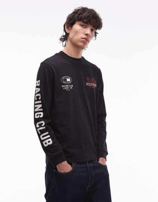 Tommy Hilfiger chest Racing logo long sleeve t-shirt in black