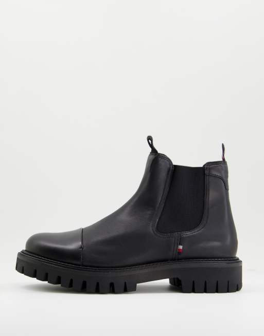 Tommy Hilfiger chunky toecap chelsea boots in black