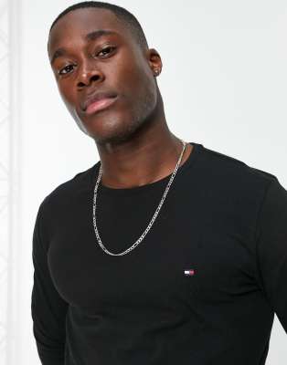Tommy Hilfiger cotton icon logo stretch slim fit long sleeve top in black - BLACK