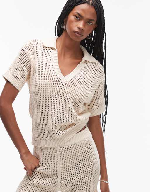 Tommy Hilfiger Crochet short sleeve shirt in beige