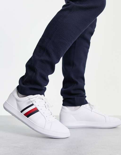 Tommy Hilfiger cup leather trainer in white with stripes