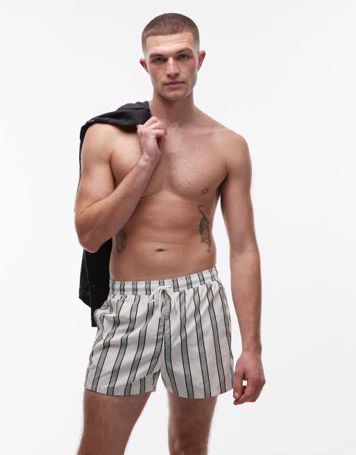 Tommy Hilfiger drawstring swim short in green and grey stripe