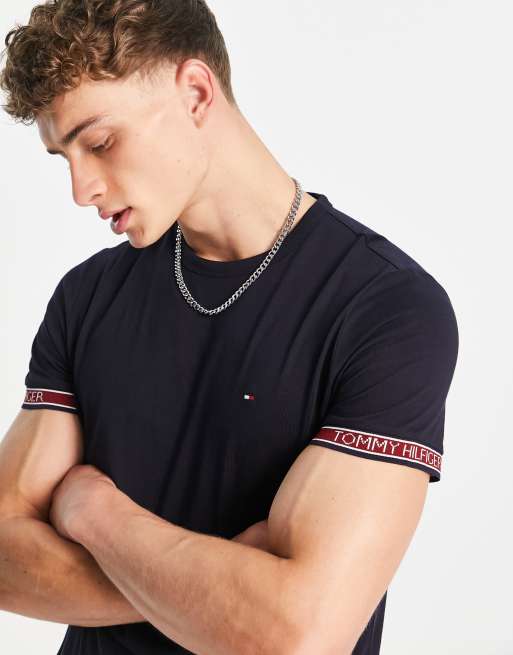 Tommy Hilfiger icon logo tipped cuff t-shirt in navy