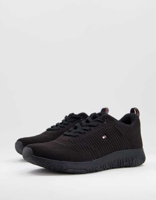 Tommy Hilfiger knit runner trainer with small flag logo in black
