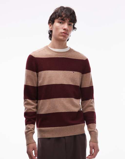 Tommy Hilfiger lambswool stripe jumper in beige and burgundy