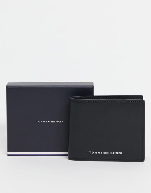 Tommy Hilfiger leather mini wallet with coin and cardholder pockets with logo in black