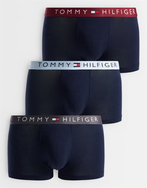 Tommy Hilfiger Original 3 pack trunks in black with red/blue/grey waistbands